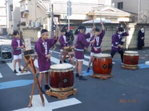 2025年11月30日 せんなんまち結いマルシェ 「江東シーサイドマラソン」での挨拶後にオープニングを飾る「川南和太鼓クラブ」演奏に間に合い、クラブ紹介を兼ねてマルシェ開催御祝いのご挨拶をさせていただきました。